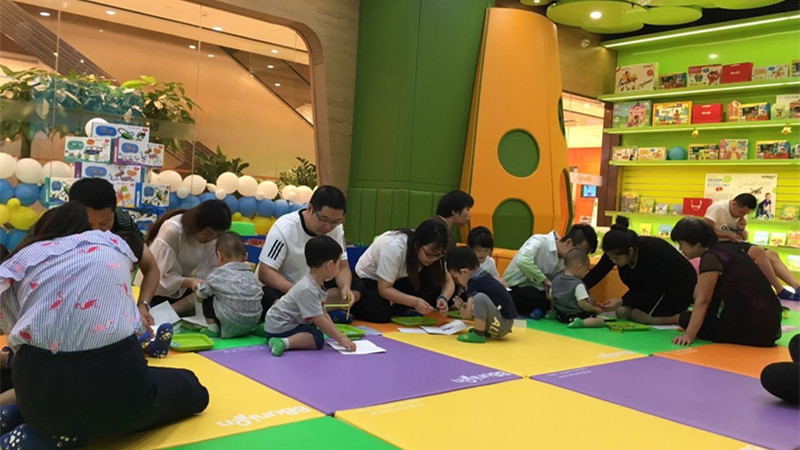 然后是DIY手工环节,宝宝以及家长用提供的图形素材进行粘贴,完成宝宝原创作品,趣味非凡。